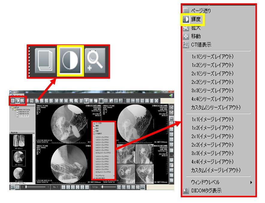 を選択、又は右クリックメニューより輝度を選択する。