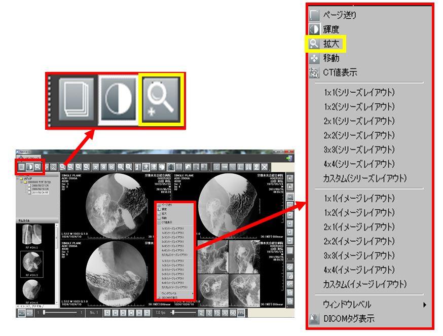 を選択、又は右クリックメニューより拡大を選択する。