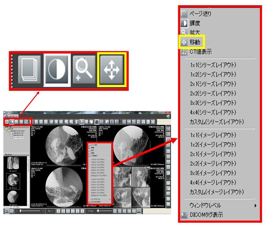 2)マウスの右をクリックしたまま、上下左右に動かし位置を調節する。