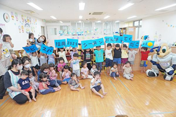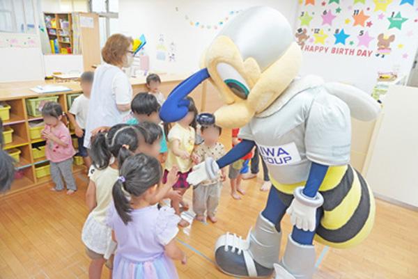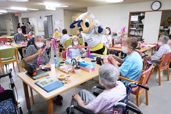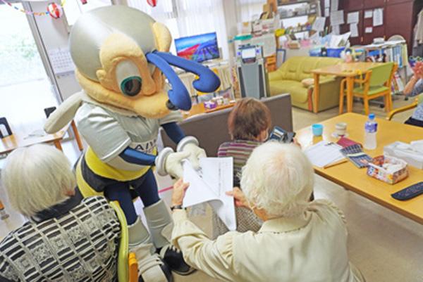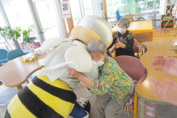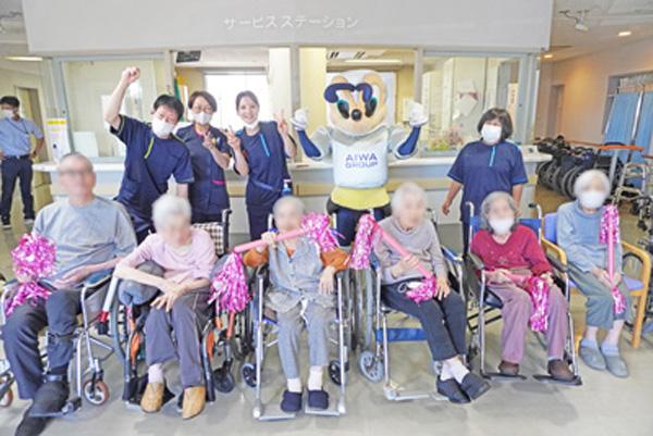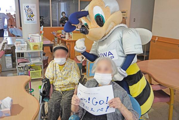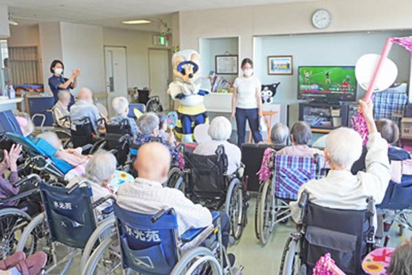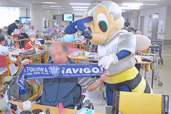 当日は、アビスパ福岡のマスコットキャラクター「アビーくん」が水光会グループの施設を訪問。