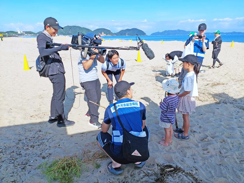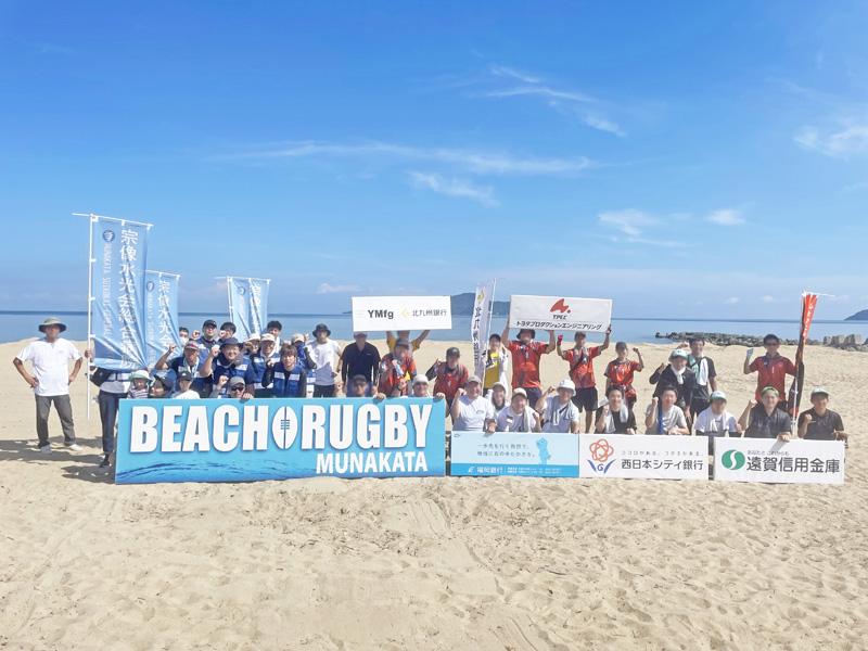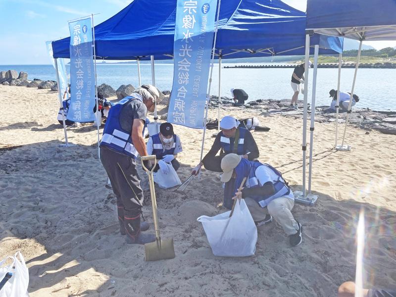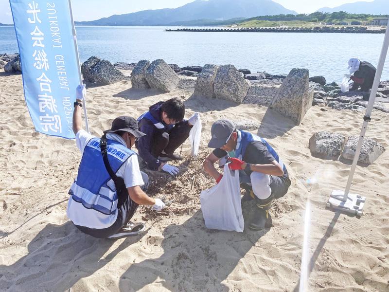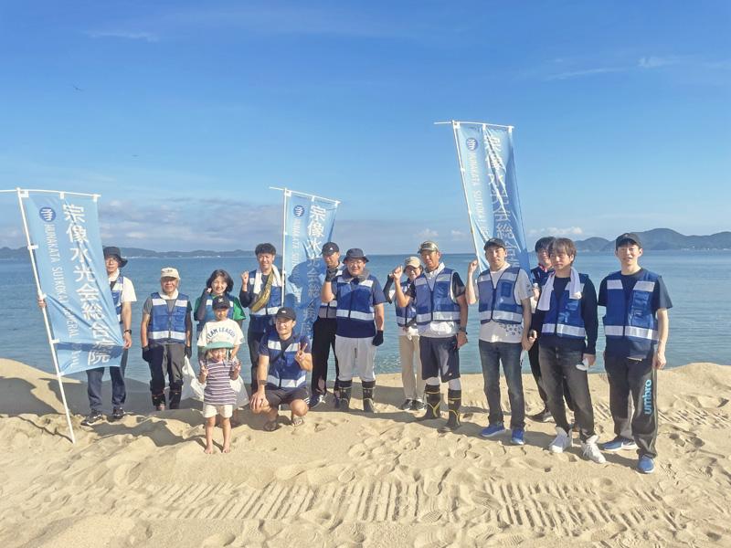 2025年8月22日(金)宗像市の神湊海水浴場にて、翌日に開催されるビーチラグビーの試合に先駆けて、ビーチクリーン活動が行われ、水光会グループの職員や家族も参加しました。