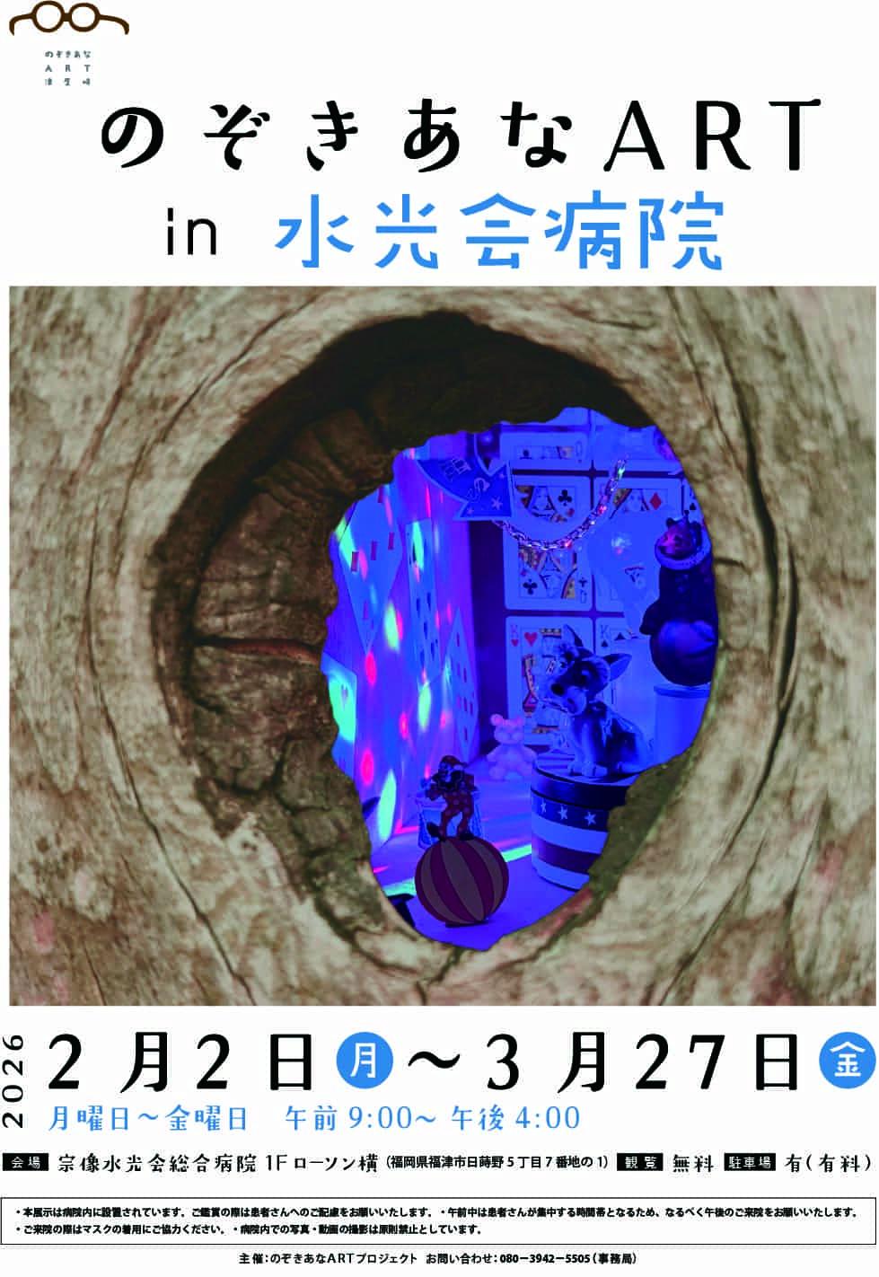 2026年2月2日~3月27日まで、病院1Fエントランス(ローソン横)にてアート展示企画「のぞきあなART in 水光会病院」を開催しています。