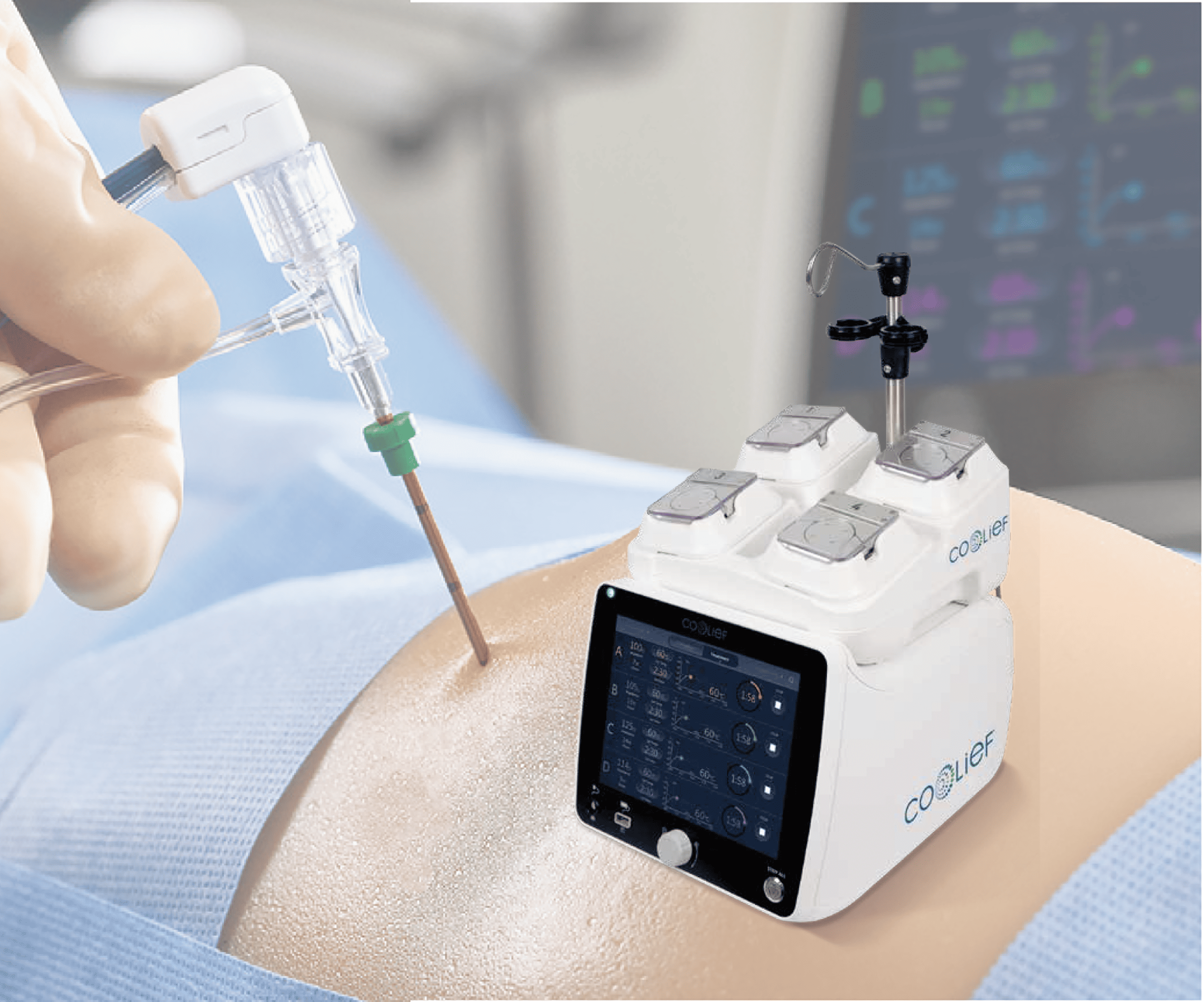 Coolief(クーリーフ)疼痛管理用高周波システム(ラジオ波治療)は、変形性膝関節症による痛みがある患者さんのうち、消炎鎮痛剤やヒアルロン酸注射などの保存療法で十分な効果が得られない方に対し、痛みの軽減を目的として行う新しい治療法です。